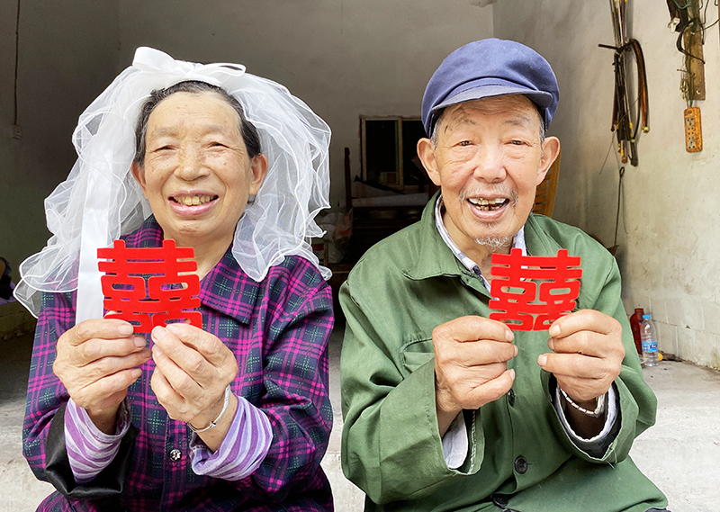 中益乡喜洋洋社工为4对老年夫妻拍别样婚纱照