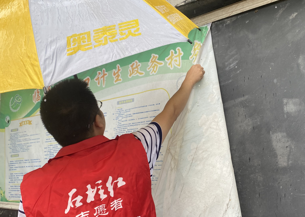 临溪镇:清理破损广告横幅 净化市容市貌